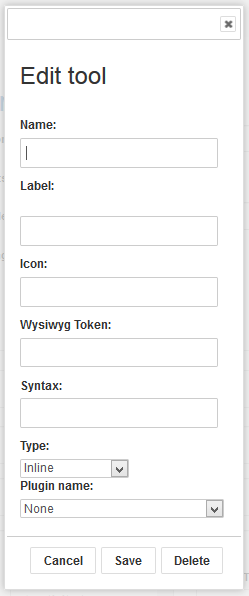 - Name: The name of your new button. This name is used internally by Tiki.
