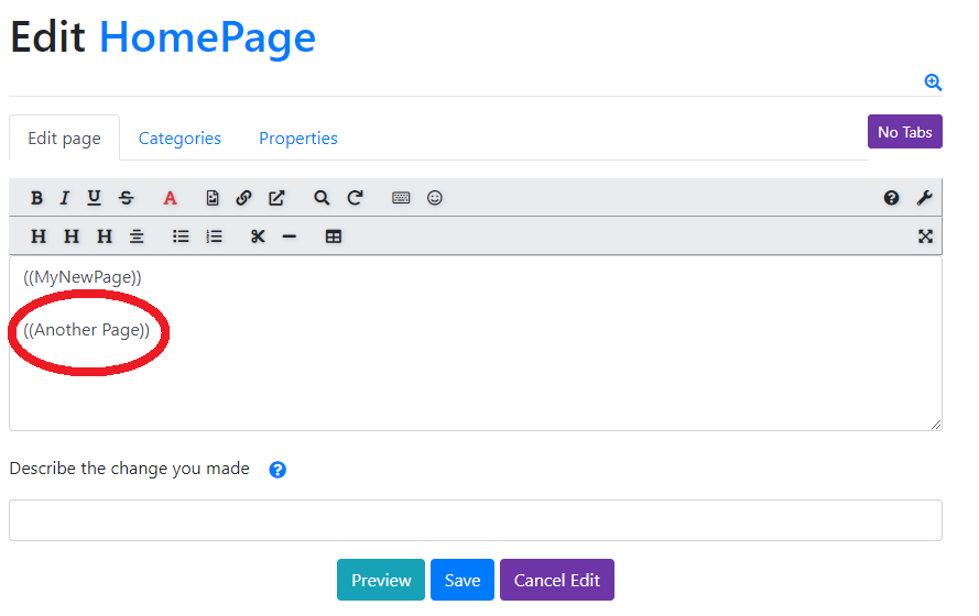 Use the Wiki Link button to add a link by using the Tiki help interface.