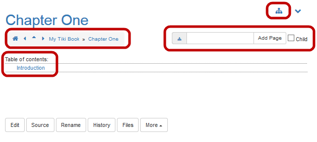 If you do not select the Child option, Tiki will create the new page as a sibling (that is, at the same level) as the Chapter Two page. - Tiki displays the Edit: Another Introduction page. Add some text to the page and click Save.