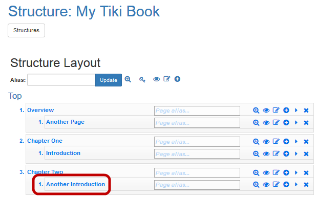 If you review the structure of the My New Book structure, you'll see Tiki has added the Another Introduction page: