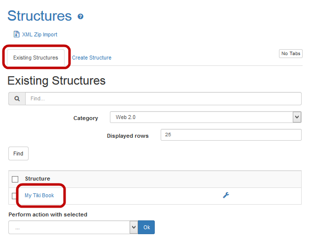 - Click Create new structure. Tiki saves the information and reloads the page.