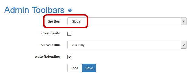 2. Use the Section drop-list to select which toolbar from which Tiki feature (section) to customize. Tiki allows you to have custom toolbars for each section.