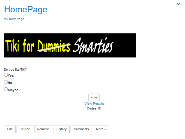 - Click Save. Tiki prompts for confirmation, then saves the information and reloads the page. You now have a poll on your home page.
