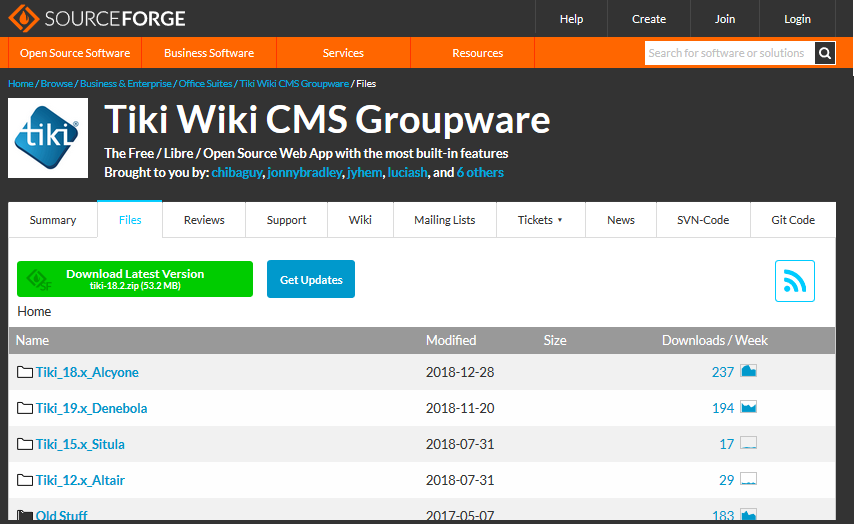 You can also get the Tiki files, including developer and pre-release versions, directly from the development environment (code repository). Refer to the Tiki Developer's Corner for details.