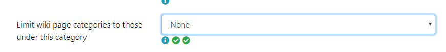 Use the Limit wiki page categories to those under this category option on the Categories control panel to select the categories available for wiki pages.