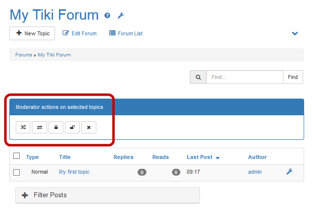 Using this toolbar, you can select topics in the forum and:- Move a topic from one forum to another.