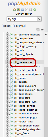 1. Using your database tool (such as phpAdmin), log into your Tiki database.