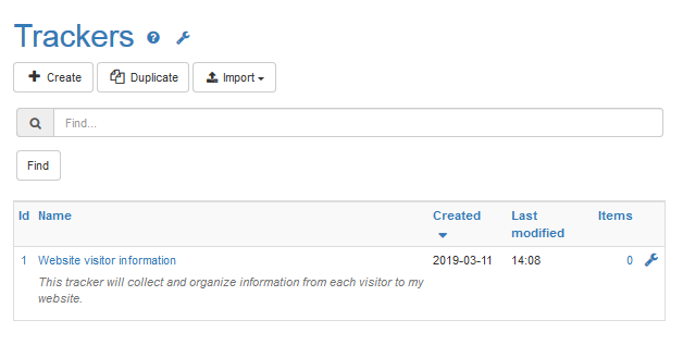 The Trackers page lists your Website Visitor information tracker.