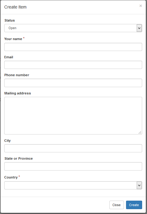 - Click Create Item. Tiki displays a form to add a new item.
